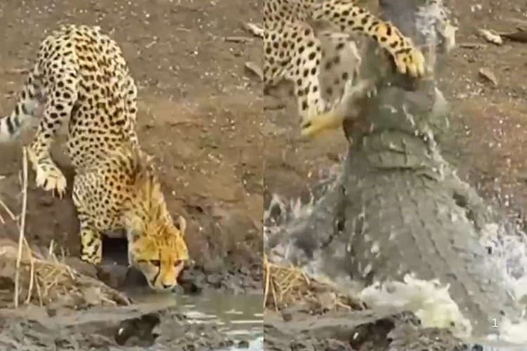 चीते को मगरमच्छ ने बनाया अपना शिकार