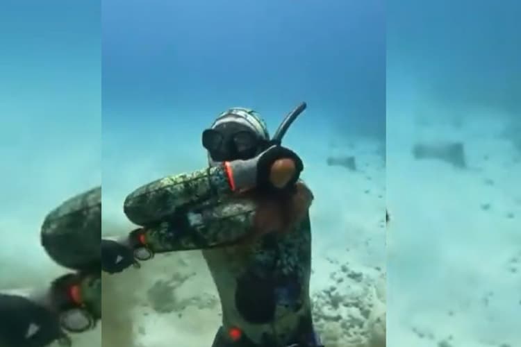 शख्स से शरीर से लिपट गया ऑक्टोपस