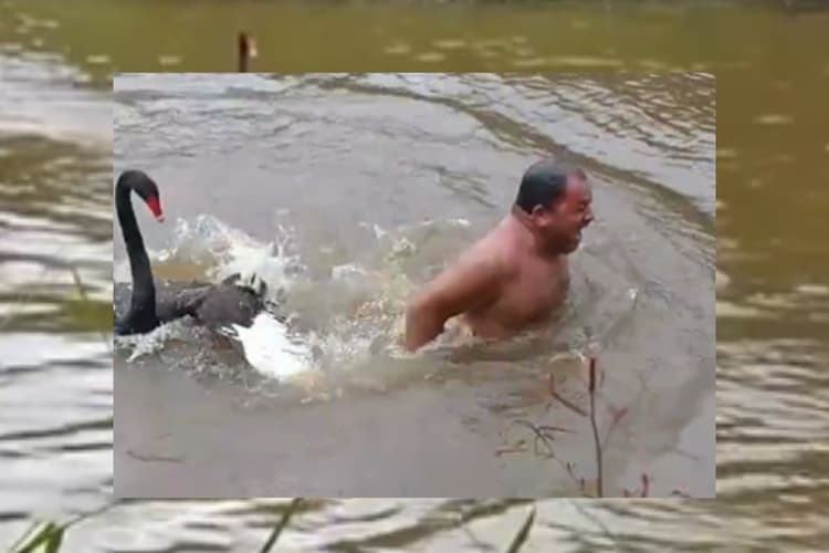 वीडियो में दिख रहा है कि नहा रहे शख्स के सामने से दो राजहंस तेजी से उसकी तरफ आ रहे हैं. स्वान (SWAN) के मूड को देखकर ही लग रहा है कि ये हमला कर सकते हैं. वो शख्स भी शायद यह समझ गया, तभी वो स्वान के आगे बढ़ने पर पीछे हटने लगा. खतरे को भांपकर वो शख्स शायद पानी से निकलना चाह रहा था, हालांकि तब तक काफी देर हो चुकी थी, दोनों में से एक राजहंस ने शख्स पर हमला कर दिया. उसके सिर, पीठ, कमर पर राजहंसों ने अपनी पैनी चोंच से हमला कर दिया.