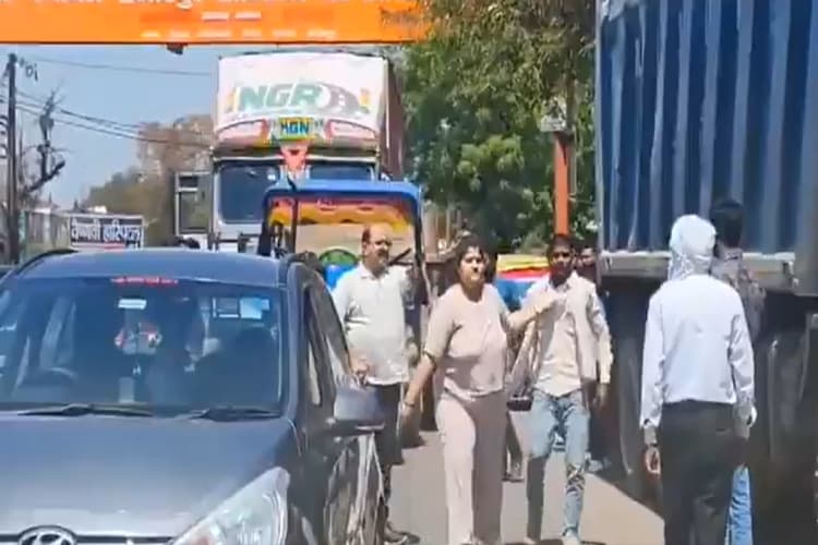 बीच सड़क महिला और ट्रक ड्राइवर के बीच रोड रेज