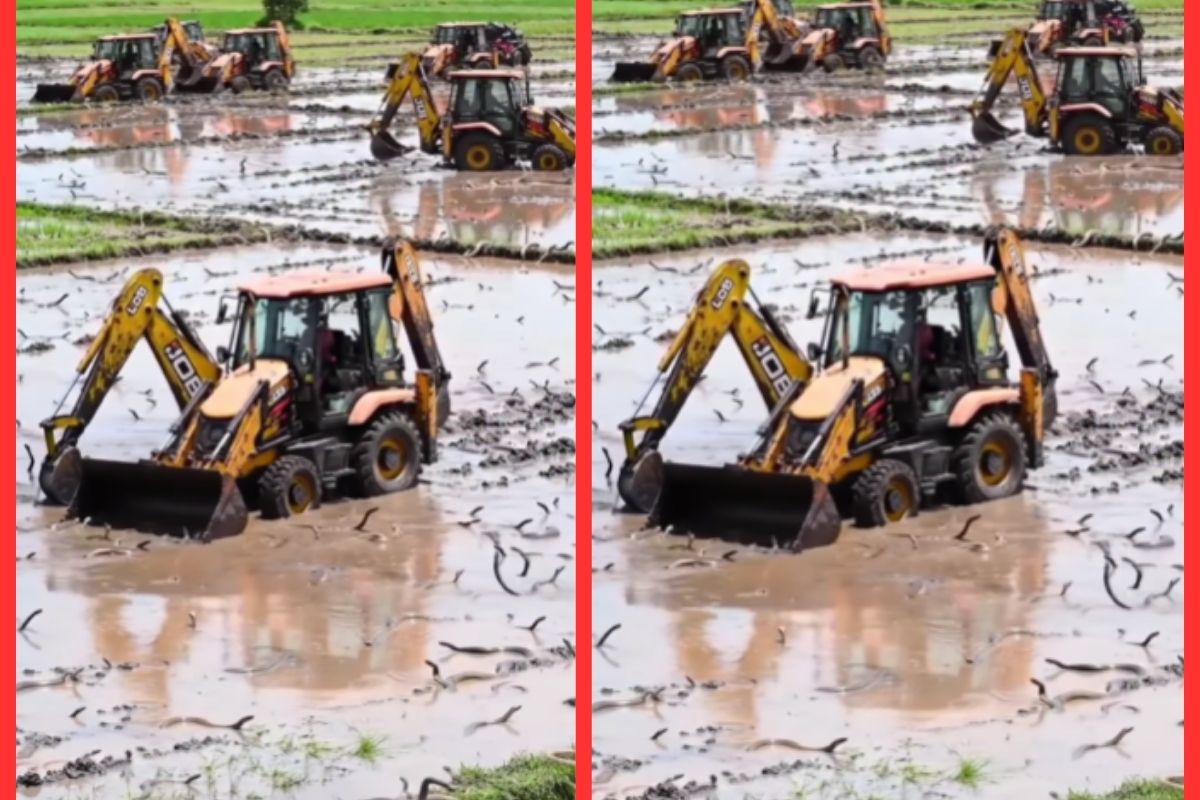 खेत में JCB मशीन भी काम करती नजर आ रही है, लेकिन उसे देखकर ऐसा लगता है जैसे वो सांपों के बीच से रास्ता बना रही हो. आसपास सांपों का ऐसा हुजूम है कि मानो वो खेत के असली मालिक हों. वीडियो इतना अजीबो-गरीब है कि एक पल के लिए विश्वास ही नहीं होता कि ऐसा भी हो सकता है. क्या ये सांपों की खेती का कोई नया बिजनेस मॉडल है, या फिर कोई डिजिटल जादूगरी? यह सवाल हर उस शख्स के दिमाग में घूम रहा है, जो ये वीडियो देख रहा है.
