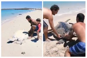 इसी बीच, दो लोग वहां पहुंचे और कछुए की इस दयनीय स्थिति को देखकर तुरंत उसकी मदद के लिए आगे आए. वीडियो में दिखता है कि वे सावधानी से मिट्टी खोदकर कछुए के शरीर को मिट्टी से निकालते है. इसके बाद वे उसे धीरे-धीरे उठाकर समुद्र के किनारे ले जाते हैं और पानी में छोड़ देते हैं. कछुआ जैसे ही पानी में पहुंचता है, वह राहत की सांस लेता हुआ तैरने लगता है. यह दृश्य इतना भावुक है कि इसे देखकर हर किसी का दिल भर आता है. इन दो लोगों की इस छोटी-सी कोशिश ने एक बेजुबान प्राणी की जान बचा ली. सोशल मीडिया पर लोगों यह वीडियो काफी पसंद आ रहा है.