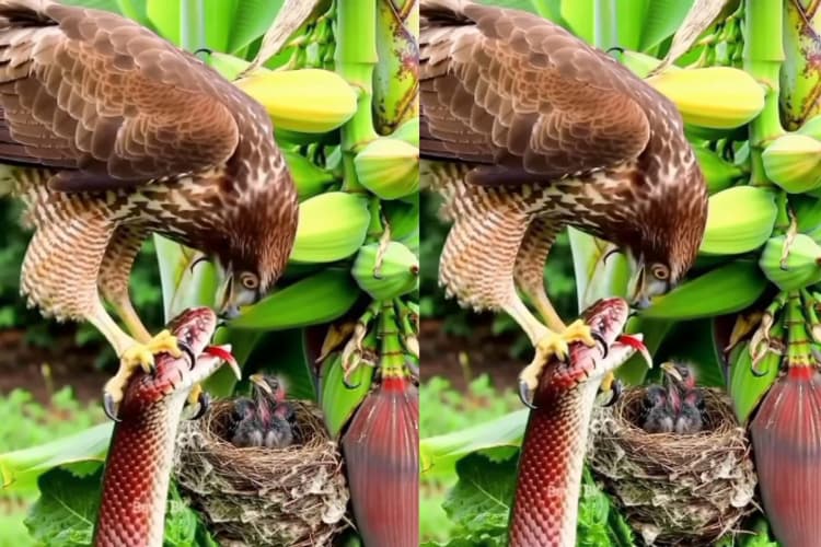 चूजे के पास सांप को देख क्रोधित हुआ बाज
