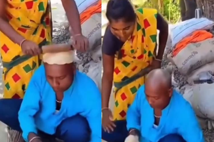 वीडियो में नजर आ रहा है कि एक पति-पत्नी मिलकर खाना बना रहे हैं. पत्नी जहां रोटियां बेलती है, वहीं पति आटे की लोइयां बनाता और आग में उन्हें पकाता. इतना ही नहीं, पत्नी को बैठकर रोटियां बेलने में तकलीफ न हो, इसके लिए वह एक नया जुगाड़ भी अपनाता है. पति अपने टकले सिर पर आटा लगाकर बैठता है. पत्नी खड़ी होकर उसके सिर पर आटे की लोइयां रखती है और एक-एक करके रोटियां बेलती है, जिन्हें पति लेता है और चूल्हे पर पकाता है. जिससे देख लोग अपने आप को हसने से रोक नहीं पा रहे है. वीडियो के वायरल होने के बाद सोशल मीडिया पर लोगों ने हंसते हुए तरह-तरह की प्रतिक्रियाएं दी है.