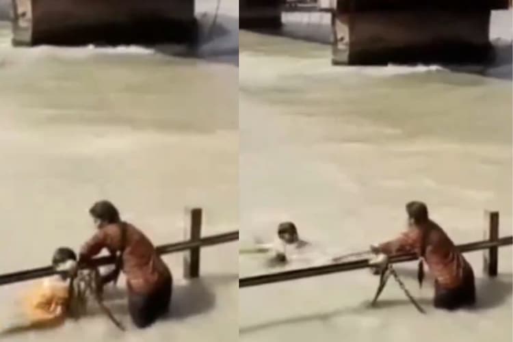 सोशल मीडिया में पर जो वीडियो वायरल हो रहा है, उसमें एक महिला नदी में बहते शख्स को बचाती दिख रही है. वीडिया में जो दिख रहा है, उसके अनुसार महिला ने नदी में बहते हुए एक शख्स को पहले ही देख लेती है और उसे बचाने के लिए नदी की ओर तेजी से भागती दिख रही है. नदी में बहते शख्स को बचाने के लिए महिला एक कपड़ा लेकर भागती है. जैसे ही शख्स महिला के पास आने वाला रहता है, उसने कपड़े के एक किनारे को नदी में फेंक देती है. शख्स ने भी उस कपड़े को झट से पकड़ लिया और फिर महिला ने उसे सहारा देकर नदी से बाहर निकालती है.