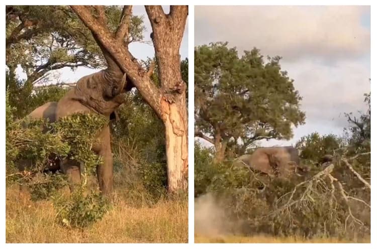 हाथी जंगल का शाकाहारी जानवर है. इसमें भोजन में मुख्य रूप से पेड़ों की पत्तियां, छाल और टहनियां शामिल होते हैं. कई बार, पेड़ की ऊंची टहनियों तक पहुंचने के लिए हाथी उसे नीचे भी गिरा देता है. वीडियो में हाथी ने जिस तरह पेड़ गिराया है वो यह साबित कर रहा है कि वह जंगल का सबसे शक्तिशाली प्राणी है. कुदरत ने उसके शरीर में अपार ताकत दी है.
