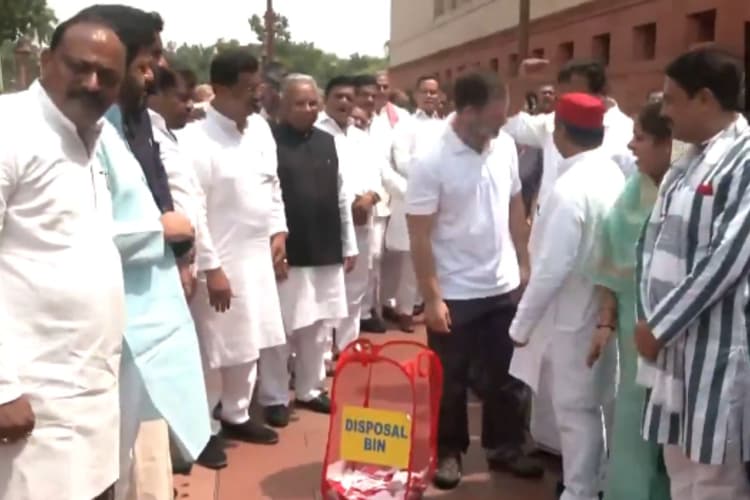 Watch Video: बिहार में चल रही वोटर वेरिफिकेशन मुद्दे पर विपक्ष सरकार के खिलाफ लगातार हमलावर है. मॉनसून सत्र के पांचवें दिन भी INDIA ब्लॉक के सांसदों ने सरकार को घेरा. इस दौरान विपक्षी सांसदों ने अनोखे अंदाज में विशेष गहन पुनरीक्षण (SIR) का विरोध किया. संसद भवन के एंट्री गेट पर पैदल मार्च निकाला और SIR लिखे पोस्टरों को फाड़कर एक प्रतीकात्मक डस्टबिन में डाल दिया.