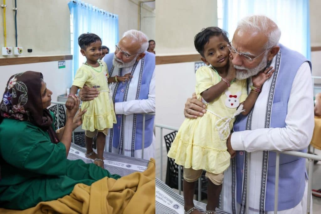 प्रधानमंत्री नरेंद्र मोदी और मुख्यमंत्री पिनाराई विजयन वायनाड में भूस्खलन के पीड़ितों और बचे लोगों से मिलने और बातचीत करने के लिए WIMS अस्पताल पहुंचे. पीएम मोदी ने पीड़ितों के बच्चों से बात भी की और उन्हें गोद में उठाकर प्यार भी किया.