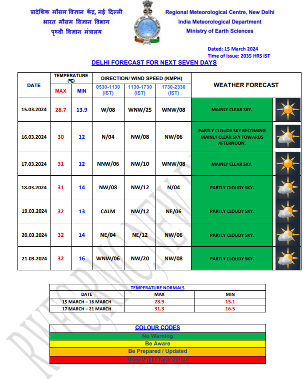 Weather Forecast : देश की राजधानी दिल्ली में बादल छाए रह सकते हैं. यहां आज का न्यूनतम तापमान 12 डिग्री और अधिकतम तापमान 30 डिग्री सेल्सियस रहने की संभावना मौसम विभाग की ओर से व्यक्त की गई है. 17 मार्च को आसमान पूरा साफ हो जाएगा लेकिन इसके बाद फिर आसमान में बादल छाए नजर आएंगे. ऐसा मौसम 21 मार्च तक देखने को मिलेगा. इस दौरान दिल्ली का अधिकतम तापमान 31 से 32 डिग्री सेल्सियस रिकॉर्ड किया जाएगा. जानें देश के अन्य राज्यों के मौसम का हाल