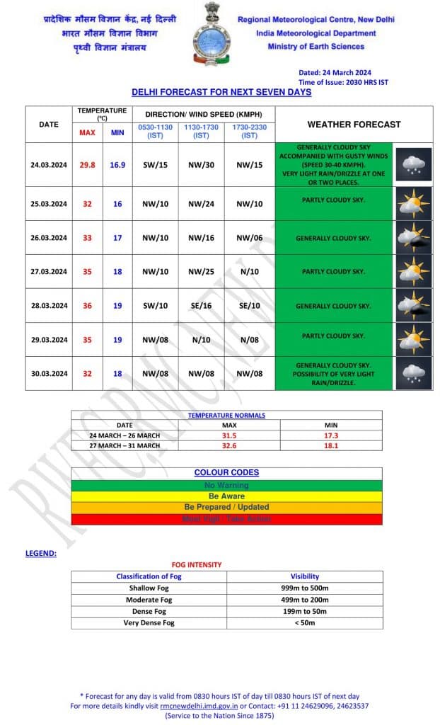 Weather Forecast : देश की राजधानी दिल्ली में कुछ स्थानों पर हल्की बारिश देखने को मिली जिसकी वजह से तापमान में कुछ गिरावट दर्ज की गई है. मौसम विभाग की मानें तो सोमवार को आसमान में आंशिक रूप से बादल छाए रह सकते हैं. दिल्ली का न्यूनतम और अधिकतम तापमान क्रमशः 16 और 32 डिग्री सेल्सियस के आसपास रहने की उम्मीद विभाग की ओर से व्यक्त की गई है. विभाग की ओर से जो पूर्वानुमान जारी किया गया है उसके अनुसार, 29 मार्च तक बादल छाए रहने की संभावना है जबकि 30 मार्च को फिर राजधानी में हल्की बारिश हो सकती है. जानें देश के अन्य राज्यों में होली पर कैसा रहने वाला है मौसम का हाल
