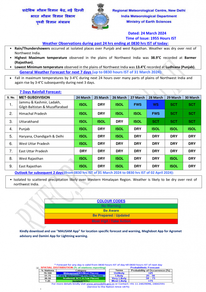 स्काइमेट वेदर के अनुसार, सोमवार को पंजाब, उत्तरी राजस्थान के साथ-साथ हरियाणा और उत्तर प्रदेश के अलग-अलग हिस्सों में हल्की बारिश देखने को मिल सकती है. पूर्वोत्तर भारत और सिक्किम में हल्की से मध्यम बारिश की संभावना व्यक्त की गई है. केरल में कुछ स्थानों पर हल्की बारिश के आसार हैं.