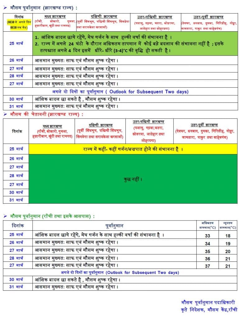 Read More : Weather Forecast : झारखंड में बारिश, जानें होली में कैसा रहने वाला है अन्य राज्यों के मौसम का हाल