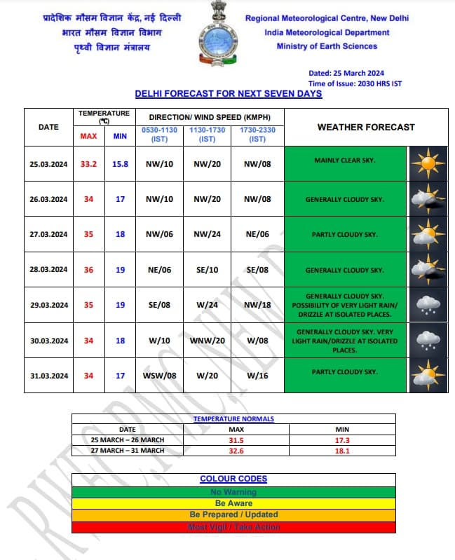 स्काइमेट वेदर के अनुसार, मंगलवार को पश्चिमी हिमालय क्षेत्र में हल्की बारिश हो सकती है. 27 से 29 मार्च के बीच पंजाब, हरियाणा और पश्चिमी उत्तर प्रदेश के कुछ हिस्सों में हल्की बारिश का पूर्वानुमान व्यक्त किया गया है.