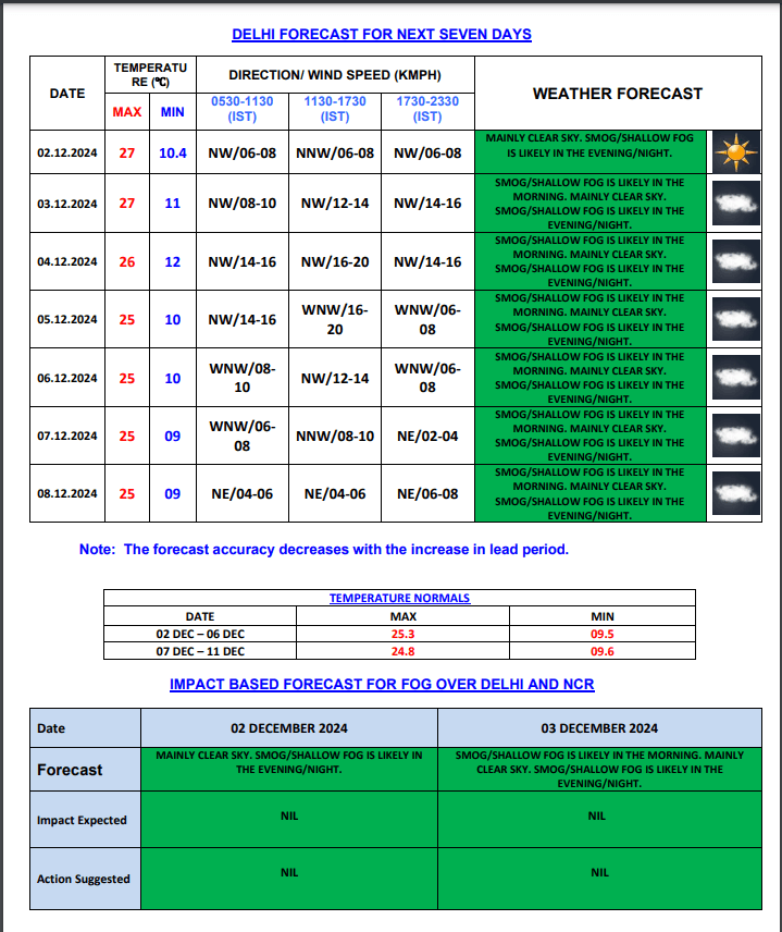 Kal Ka Mausam : राजधानी दिल्ली में कोहरे की वजह से लोगों को परेशानी का सामना करना पड़ सकता है. मौसम विभाग ने बताया कि मंगलवार की सुबह कोहरा छाया रहेगा. दिन में कुछ राहत मिलेगी, लेकिन शाम को कुछ इसी तरह का मौसम रहने की संभावना है. 3 दिसंबर को यहां न्यूनतम तापमान 11 डिग्री जबकि अधिकतम तापमान 27 डिग्री रिकॉर्ड किया जा सकता है.
