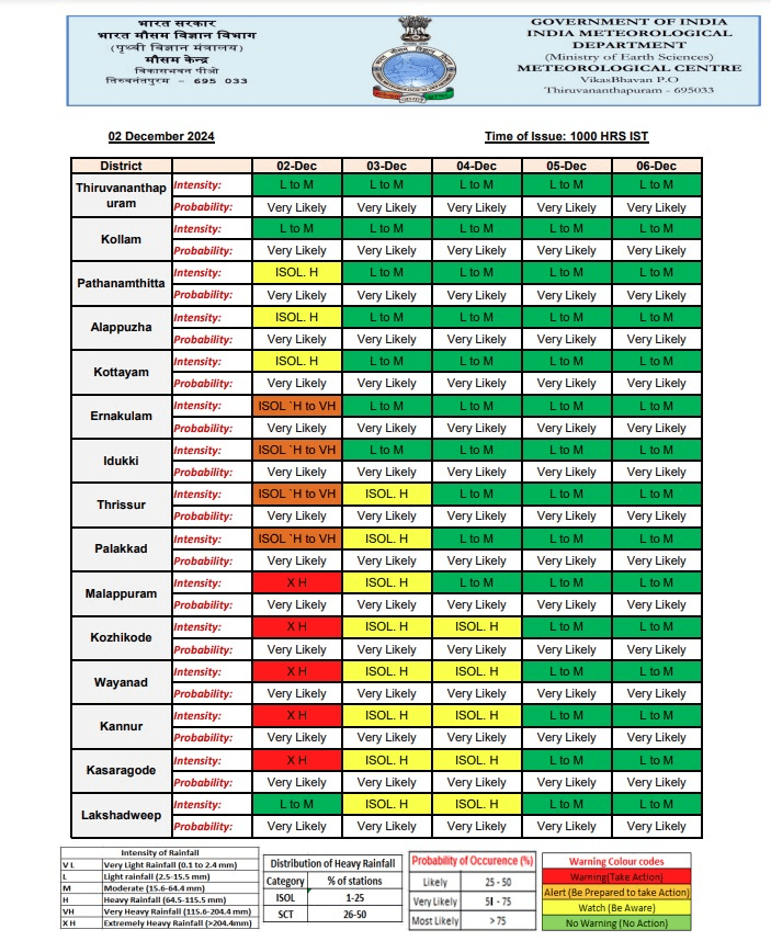 देश के दक्षिणी राज्यों में भारी बारिश का दौर जारी है. मौसम विभाग (IMD) ने केरल के मलप्पुरम, कोझीकोड, वायनाड, कन्नूर और कासरगोड जिलों में बहुत भारी बारिश का ‘रेड’ अलर्ट जारी किया है. विभाग ने बताया कि तमिलनाडु और पुडुचेरी के उत्तरी तटीय क्षेत्रों में बना प्रेशर (चक्रवाती तूफान ‘फेंगल’ का प्रभाव) लगभग पश्चिम की ओर बढ़ गया है. उत्तरी आंतरिक तमिलनाडु के ऊपर कमजोर होकर यह एक लो प्रेशर एरिया में तब्दील हो गया है. लो प्रेशर का प्रभाव मंगलवार को उत्तरी केरल-कर्नाटक तटों से दूर दक्षिण-पूर्व और उससे सटे पूर्व-मध्य अरब सागर में दिखेगा.
