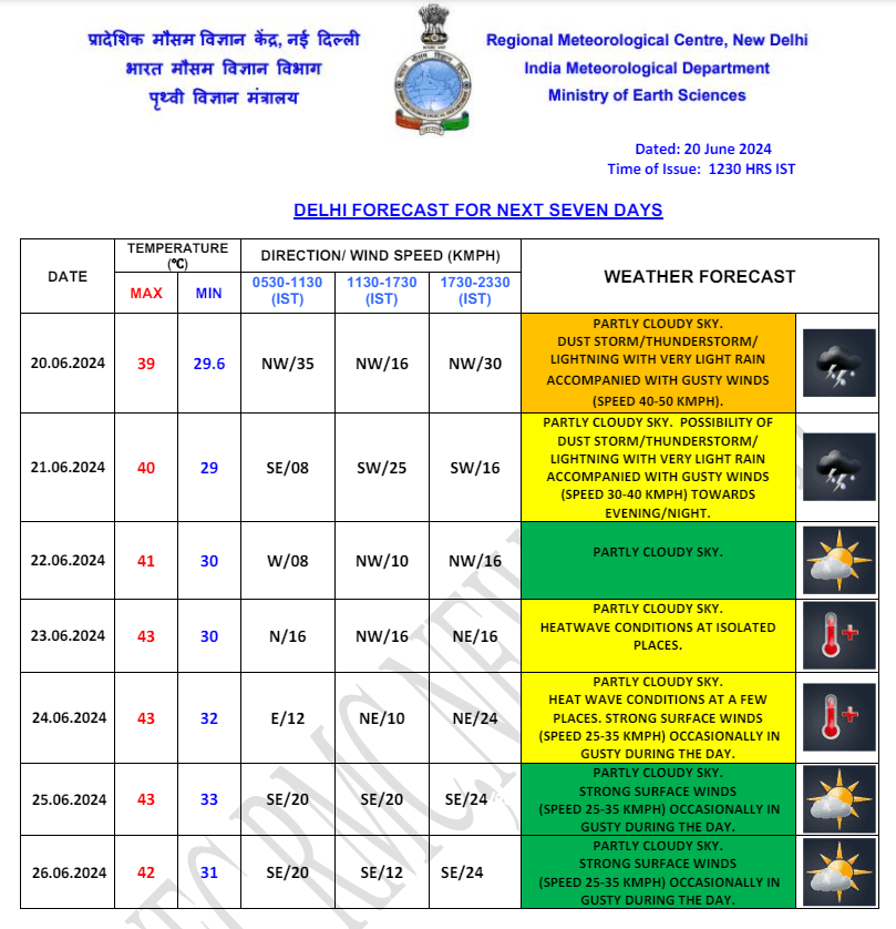 Weather Forecast: दिल्ली में हल्की बारिश और आंधी के कारण लोगों को गर्मी से कुछ राहत मिली है. मौसम विभाग के अनुसार, शुक्रवार को आसमान में आंशिक रूप से बादल छाए रह सकते हैं. वहीं बारिश और धूल भरी आंधी चलने की संभावना विभाग की ओर से व्यक्त की गई है. दिल्ली में आज अधिकतम और न्यूनतम तापमान क्रमश: 40 और 29 डिग्री सेल्सियस के आसपास रिकॉर्ड किया जा सकता है. जानें देश के अन्य राज्यों के मौसम का हाल