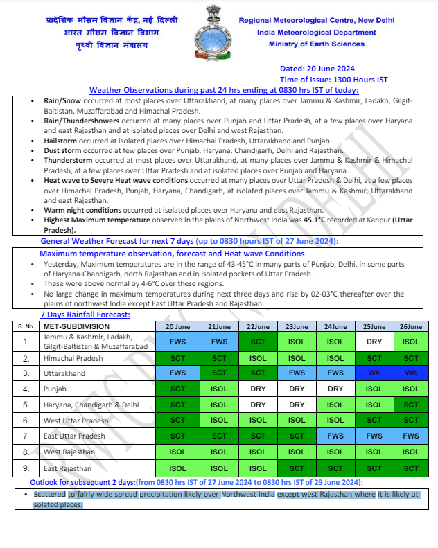 मौसम विभाग ने बताया कि अगले तीन से चार दिनों के दौरान गुजरात, महाराष्ट्र, मध्य प्रदेश के अलावा ओडिशा, गंगा और उप-हिमालयी पश्चिम बंगाल, झारखंड, बिहार, पूर्वी यूपी के कुछ और हिस्सों में मानसून के पहुंचने के लिए परिस्थितियां अनुकूल बनी हुई है. इधर, मानसून उत्तर बंगाल के ज्यादातर भागों में पहुंच चुका है और अगले पांच दिनों में यहां के इलाकों में भारी बारिश को लेकर मौसम विभाग की ओर से अलर्ट जारी किया गया है.