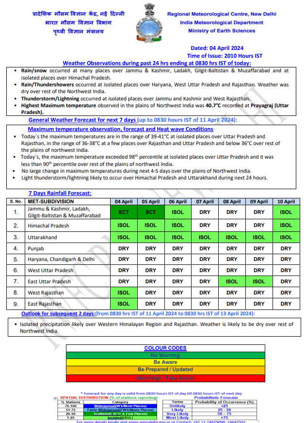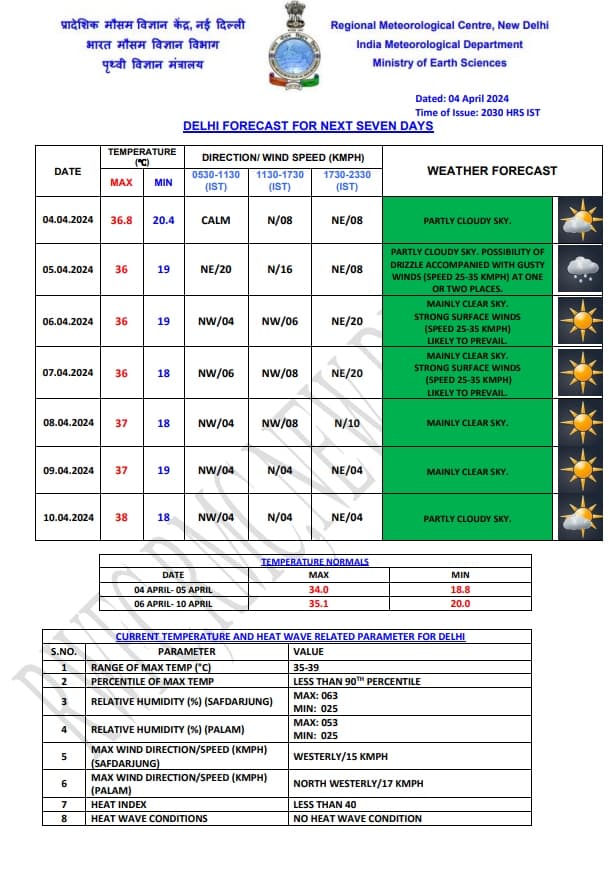 Weather Forecast: दिल्ली-एनसीआर के मौसम की बात करें तो शुक्रवार को यहां हल्की बारिश देखने को मिल सकती है. मौसम विभाग के अनुसार, दिल्ली का अधिकतम और न्यूनतम तापमान क्रमश: 36 डिग्री सेल्सियस और 19 डिग्री सेल्सियस रह सकता है. 6 अप्रैल से मौसम साफ हो जाएगा और तापमान में 8 अप्रैल के बाद कुछ बढ़ोतरी दिखने लगेगी. जानें अन्य राज्यों के मौसम का हाल