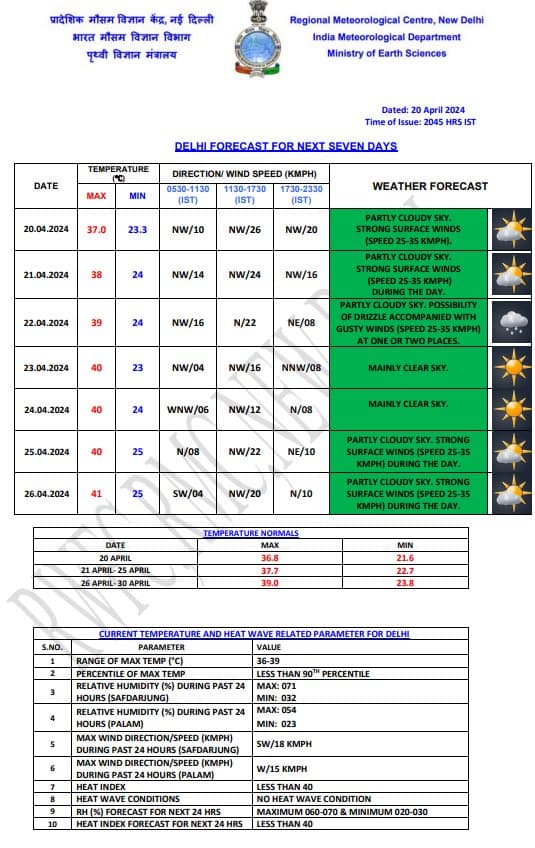 Weather Forecast: दिल्ली-एनसीआर में गर्मी से लोग परेशान है. राजधानी दिल्ली में शनिवार को अधिकतम तापमान 37.2 डिग्री सेल्सियस रिकॉर्ड किया गया. मौसम विभाग की ओर से जो जानकारी दी गई है उसके अनुसार, रविवार को तेज सतही हवाएं चलने का अनुमान है. राजधानी का अधिकतम और न्यूनतम तापमान क्रमश: 38 और 24 डिग्री सेल्सियस के आसपास रह सकता है. दिल्ली में सोमवार को हल्की बारिश की संभावना व्यक्त की गई है. इसके बाद मंगलवार से आसमान पूरी तरह से साफ हो जाएगा. जानें अन्य राज्यों के मौसम का हाल