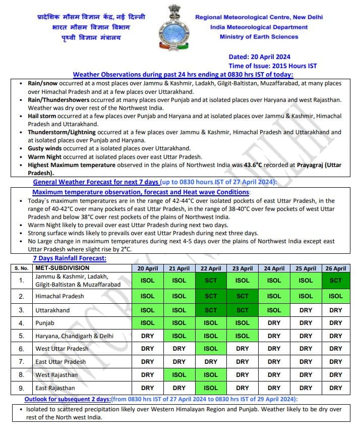 मौसम का पूर्वानुमान बताने वाली निजी संस्था स्काइमेट की ओर से जो जानकारी दी गई है उसके अनुसार, 21 से 26 अप्रैल के बीच जम्मू-कश्मीर, लद्दाख के साथ-साथ हिमाचल प्रदेश और उत्तराखंड में बारिश हो सकती है. इन राज्यों में बर्फबारी की भी संभावना है. वहीं 22 अप्रैल को पश्चिमी राजस्थान में बारिश के आसार हैं.