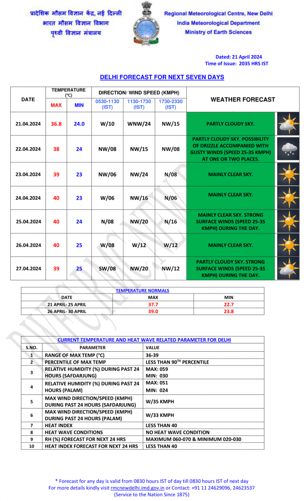 पूर्वी दिल्ली और एनसीआर के कुछ इलाकों में सोमवार तड़के बारिश हुई जिसने लोगों को गर्मी से कुछ राहत दी. मौसम विभाग ने 22 अप्रैल को दिल्ली के कुछ इलाकों में बारिश का पूर्वानुमान व्यक्त किया था. आज दिनभर दिल्ली में आंशिक बादल छाए नजर आएंगे. आज दिल्ली का अधिकतम तापमान 38 और न्यूनतम 24 डिग्री सेल्सियस रिकॉर्ड किया जा सकता है. कल से आकाश साफ हो जाएगा और एक बार फिर तापमान में बढ़ोतरी होगी.
