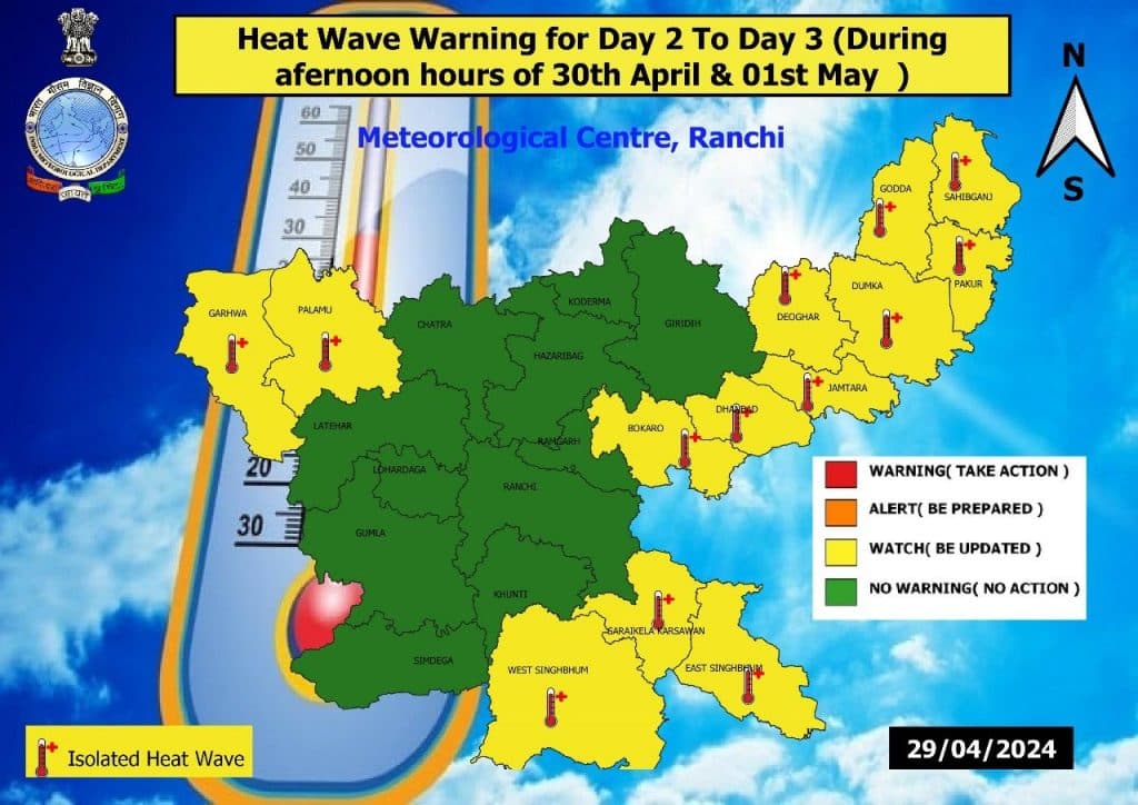झारखंड सरकार ने राज्यभर में भीषण गर्मी के मद्देनजर आज से आठवीं तक की कक्षाओं में छुट्टी की घोषणा की है. झारखंड के 24 में से 20 जिलों में HEAT WAVE चल रही है. मौसम विभाग के अनुसार, अगले चार दिनों के दौरान अधिकतम तापमान में कोई बड़े बदलाव की संभावना नहीं है.