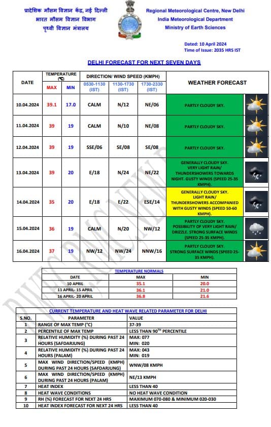 Weather Forecast: दिल्ली और एनसीआर के इलाकों में अब गर्मी अपना प्रकोप दिखाने लगी है. दिल्ली में बुधवार को अधिकतम तापमान बढ़कर 39.1 डिग्री सेल्सियस पर पहुंच गया. यह तापमान इस साल अब तक शहर का सबसे अधिक तापमान रहा जिसने लोगों को परेशान किया. मौसम विभाग की मानें तो इस सप्ताह तापमान लगभग 40 डिग्री सेल्सियस तक बढ़ने की संभावना है. दिल्ली में 13 और 14 अप्रैल को गरज के साथ हल्की बारिश से लोगों को कुछ राहत मिल सकती है. विभाग के अनुसार, दिल्ली में गुरुवार को आंशिक रूप से बादल छाए रह सकते हैं जबकि यहां का अधिकतम और न्यूनतम तापमान क्रमश: 39 और 19 डिग्री सेल्सियस रिकॉर्ड किया जा सकता है. जानें देश के अन्य राज्यों के मौसम का हाल
