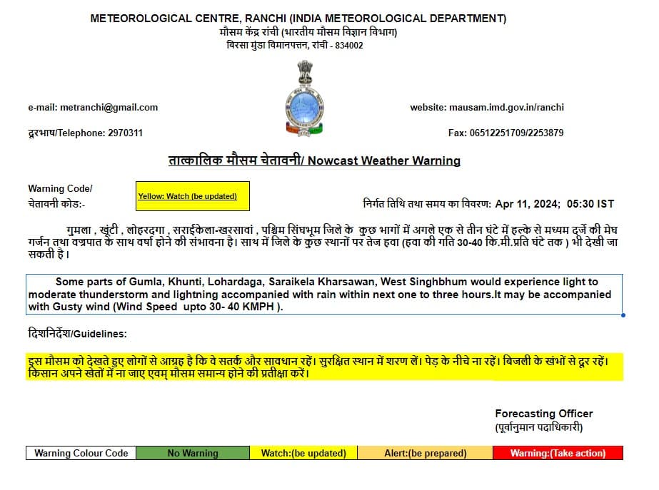 झारखंड की राजधानी रांची सहित कुछ जिलों में गुरुवार सुबह हल्की बारिश से तापमान में गिरावट दर्ज की गई है. आज गुमला, खूंटी लोहरदगा सराइकेला-खरसावां और पश्चिमी सिंहभूम में हल्के से मध्यम दर्जे की बारिश की संभावना मौसम विभाग की ओर से व्यक्त की गई है.