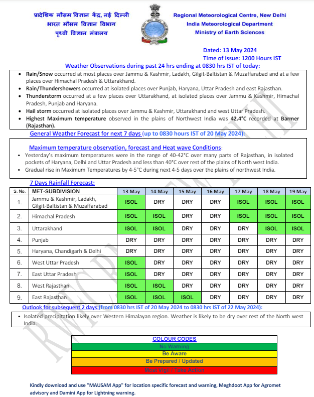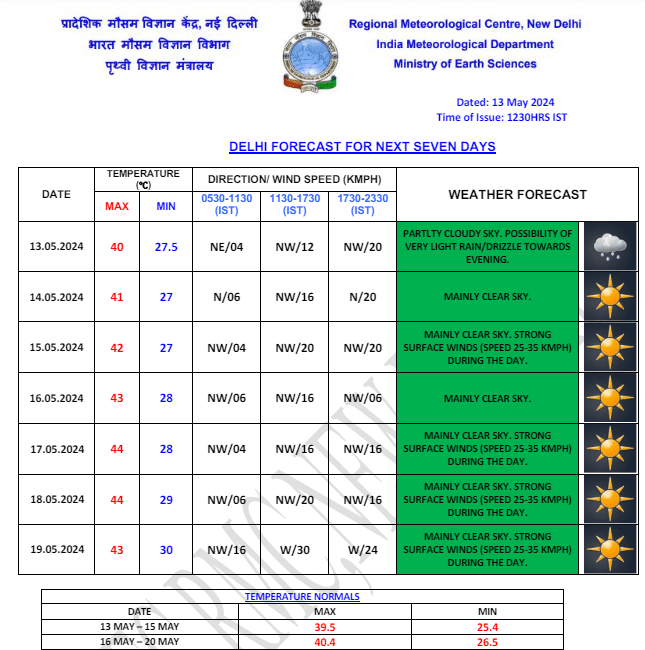 Weather Forecast: राजधानी दिल्ली में सोमवार को अधिकतम तापमान 40.2 डिग्री सेल्सियस दर्ज किया गया. मौसम विभाग की ओर से जो पूर्वानुमान जारी किया गया है उसके मुताबिक, दिल्ली में मंगलवार को आसमान साफ रहेगा और यहां का अधिकतम और न्यूनतम तापमान क्रमश: 41 एवं 26 डिग्री सेल्सियस के आस-पास रहने की संभावना है. अब दिल्ली के लोगों को गर्मी सताने वाली है क्योंकि अगले कुछ दिनों में पारा धीरे-धीरे और चढ़ेगा. जानें अन्य राज्यों के मौसम का हाल