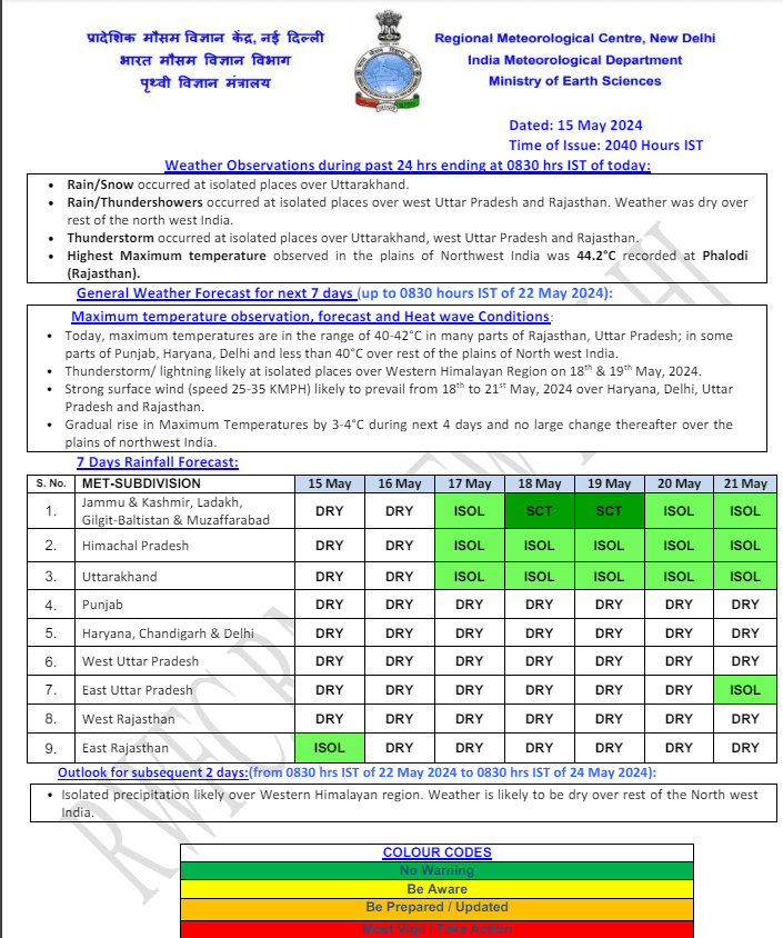 Weather Forecast: दिल्ली के लोगों को गर्मी अभी और सताएगी. यहां का पारा 45 डिग्री सेल्सियस तक पहुंच सकता है. जानें देश के अन्य राज्यों के मौसम का हाल