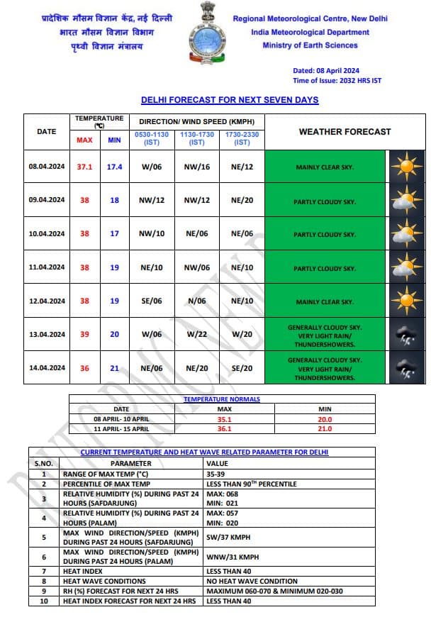 Weather Forecast: दिल्ली-एनसीआर का मौसम अब गर्म होने लगा है. दिल्ली का अधिकतम तापमान 37.1 डिग्री सेल्सियस सोमवार को रिकॉर्ड किया गया. विभाग के अनुसार, दिल्ली में मंगलवार को आंशिक रूप से बादल छाए रह सकते हैं. वहीं यहां का अधिकतम तापमान 38 डिग्री सेल्सियस और न्यूनतम तापमान 18 डिग्री सेल्सियस रहने की संभावना व्यक्त की गई है. 13 अप्रैल के बाद से राजधानी में हल्की बारिश देखने को मिल सकती है. जानें देश के अन्य राज्यों के मौसम का हाल