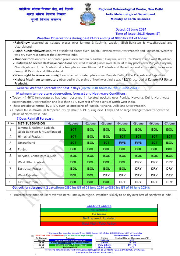 Weather Forecast : दिल्ली में हल्की बारिश की संभावना, जानें देश के अन्य राज्यों के मौसम का हाल