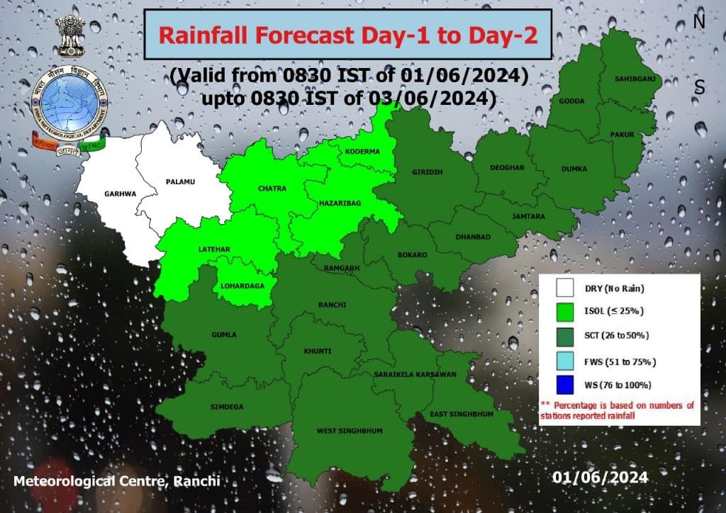 झारखंड के मौसम पर नजर डालें तो गढ़वा और पलामू में हीट वेव चल सकती है. वहीं कुछ जिलों में हल्की बारिश के साथ वज्रपात की संभावना मौसम विभाग की ओर से व्यक्त की गई है.