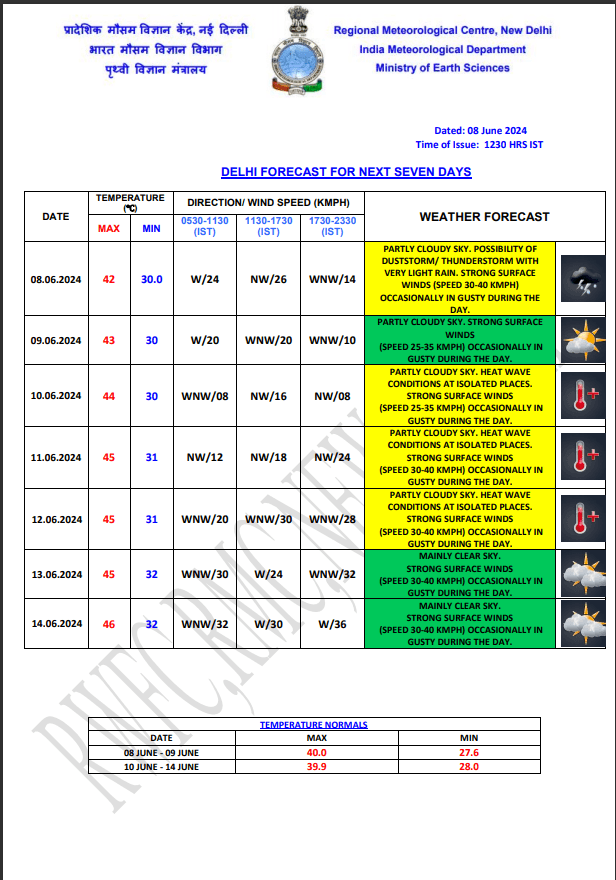 Weather Forecast : दिल्ली-एनसीआर का तापमान कम होने का नाम नहीं ले रहा है जिससे लोगों को गर्मी का अहसास हो रहा है. रविवार को दिल्ली में बादल छाए रहने की संभावना है. राष्ट्रीय राजधानी का तापमान आज भी 40 डिग्री से ज्यादा रिकॉर्ड किया जा सकता है. सोमवार से तापमान लगातार बढ़ने की संभावना मौसम विभाग की ओर से व्यक्त की गई है. विभाग के अनुसार, आज दिल्ली का अधिकतम तापमान 43 डिग्री सेल्सियस रह सकता है जबकि न्यनतम तापमान 30 डिग्री रिकॉर्ड किया जा सकता है. जानें देश के अन्य राज्यों के मौसम का हाल