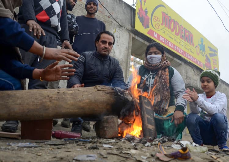 Amritsar: Locals warm themselves near a bonfire on a cold winter morning, in Amritsar, Wednesday, Dec. 16, 2020. (PTI Photo)(PTI16-12-2020_000221B)