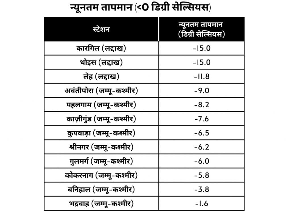 शून्य से 4 डिग्री से ज्यादा नीचे पहुंचा तापमान