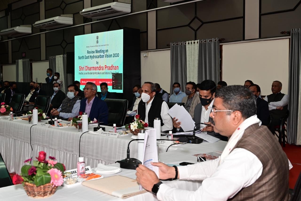 Union Petroleum Minister Dharmendra Pradhan conducts a review meeting with oil and gas companies on Hydrocarbon Vision 2030 in Duliajan, Assam. pic.twitter.com/JT11EEYiY1