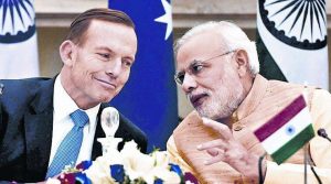ऑस्ट्रेलिया ने मंगलवार को घोषणा की कि वह शांतिपूर्ण उद्देश्यों के लिए भारत को यूरेनियम की आपूर्ति का इच्छुक है. नरेंद्र मोदी ने कहा कि दोनों देश असैन्य परमाणु करार को जल्द से जल्द पूरा करें, जिससे ऑस्ट्रेलिया इस क्षेत्र में भारत का भागीदार बन सके. दोनों देशों के बीच पांच समझौतों पर हस्ताक्षर किये गये, जो सामाजिक सुरक्षा, कैदियों की अदला-बदली, मादक पदार्थो के व्यापार पर लगाम लगाने और पर्यटन, कला एवं संस्कृति को आगे बढ़ाने से जुड़े हैं.