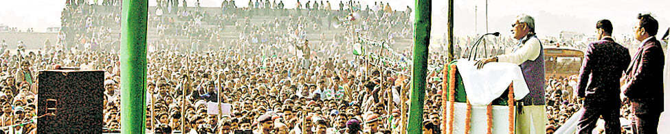 हालांकि, भीड़ की संरचना में बदलाव साफ दिख रहा थी. भाजपा-जदयू गंठबंधन के दौर से उलट, इस भीड़ में ऊंची जातियों के संभ्रांत व समृद्ध लोगों की अनुपस्थिति तथा पिछड़ी जातियों की बड़ी भागीदारी स्पष्ट थी. रैली में आने का कारण पूछने पर रामचंद्र ठाकुर ने कहा, ‘मैं बाल काटने की दुकान (सैलून) बंद कर इसमें आया हूं. उन्होंने हमारे जैसे लोगों के लिए बहुत काम किया है.’ उसका कथन नीतीश सरकार के कामकाज पर फैसले जैसा था. ठाकुर की बात पर उसके जैसी सामाजिक-आर्थिक पृष्ठभूमि से आनेवाले अनेक लोगों ने अपनी सहमति दी. लेकिन भावावेश में निर्णय देना आम बिहारी विशेषता है, जो समाज के किसी एक वर्ग तक सीमित नहीं है. ठेके पर काम कर रहे लोगों द्वारा सफेद बैनर के माध्यम से की गयी खुद को नियमित करने की मांग में इसे देखा जा सकता है, जिन्होंने सुशासन देने के अपने ‘संकल्प’ को दुहराते मुख्यमंत्री के कार्यक्रम में अपने असंतोष को अभिव्यक्ति दी.