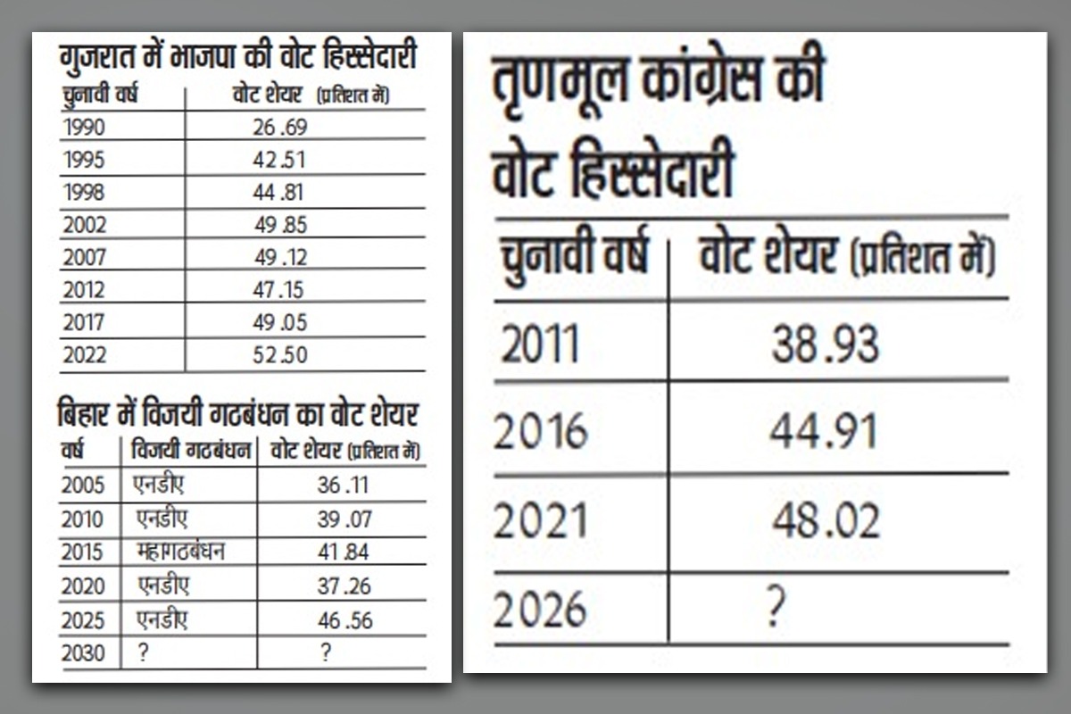 अपने कामकाज की बदौलत गुजरात, पश्चिम बंगाल और बिहार में सत्तारूढ़ गठबंधन ने लगातार अपनी सत्ता बनाये रखी है