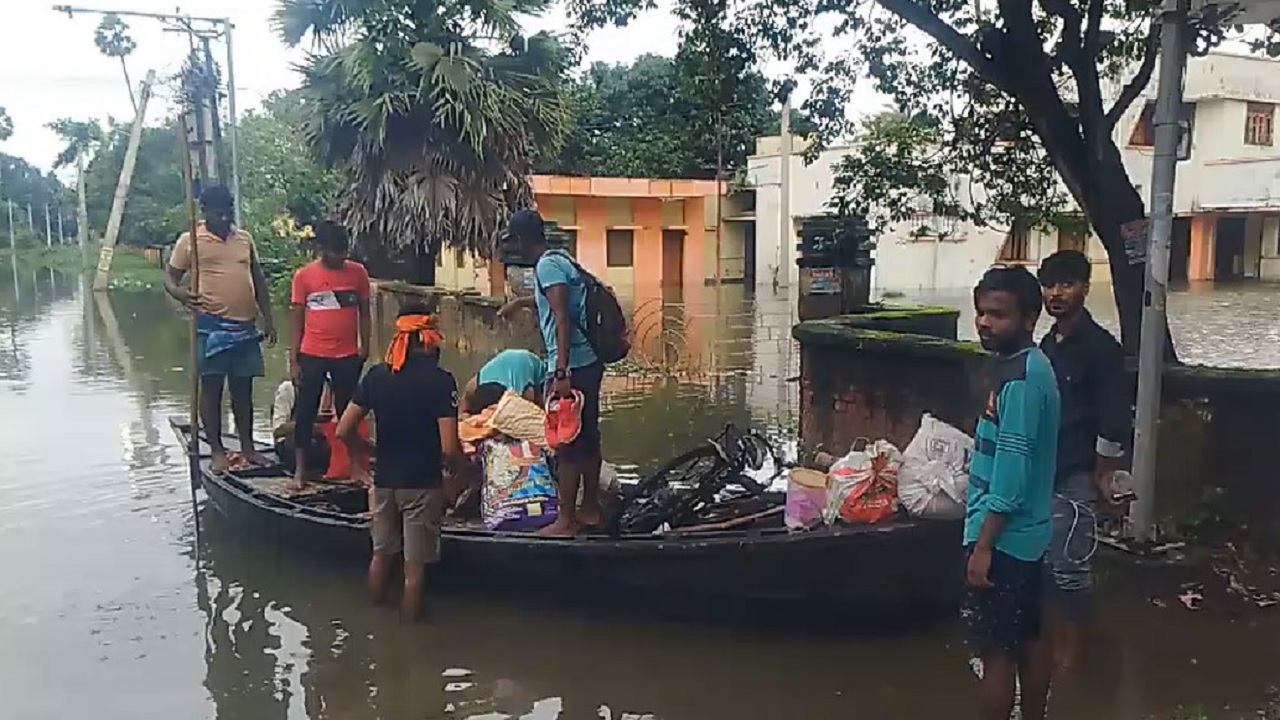 Bhagalpur Rain Photos: विश्वविद्यालय के अंबेडकर हॉस्टल में जलजमाव होने के कारण गुरुवार को नाव के सहारे छात्र अपने सामानों को लाद कर अन्यत्र रहने के लिए निकल पड़े.