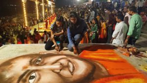 सीएम योगी के जन्मदिन की पूर्व संध्या पर शनिवार की शाम वाराणसी के अस्सी गंगा घाट किनारे विशेष आरती का आयोजन हुआ. इस दौरान ना सिर्फ सीएम योगी आदित्यनाथ की रंगोली उकेरी गई.