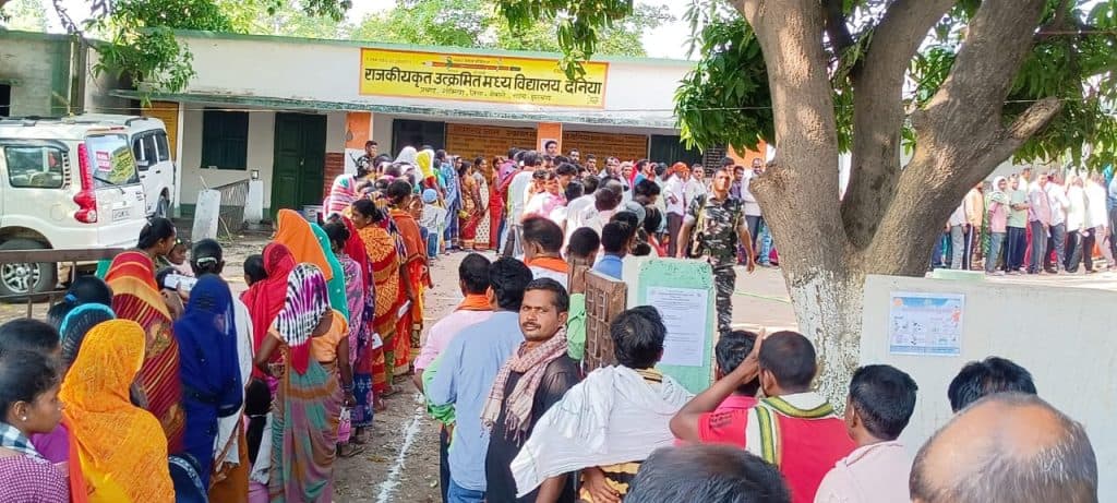 नक्सल प्रभावित इलाके में मतदान केंद्रों पर उमड़ रही भारी भीड़