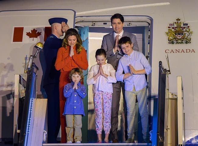 IN PICS: पूरे परिवार के साथ भारत पहुंचे कनाडा के पीएम, हवाई जहाज से ही किया ‘नमस्कार’