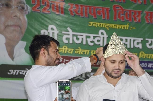 RJD 22वां स्थापना दिवस: तेज प्रताप ने तेजस्वी यादव को पहनाया मुकुट और…
