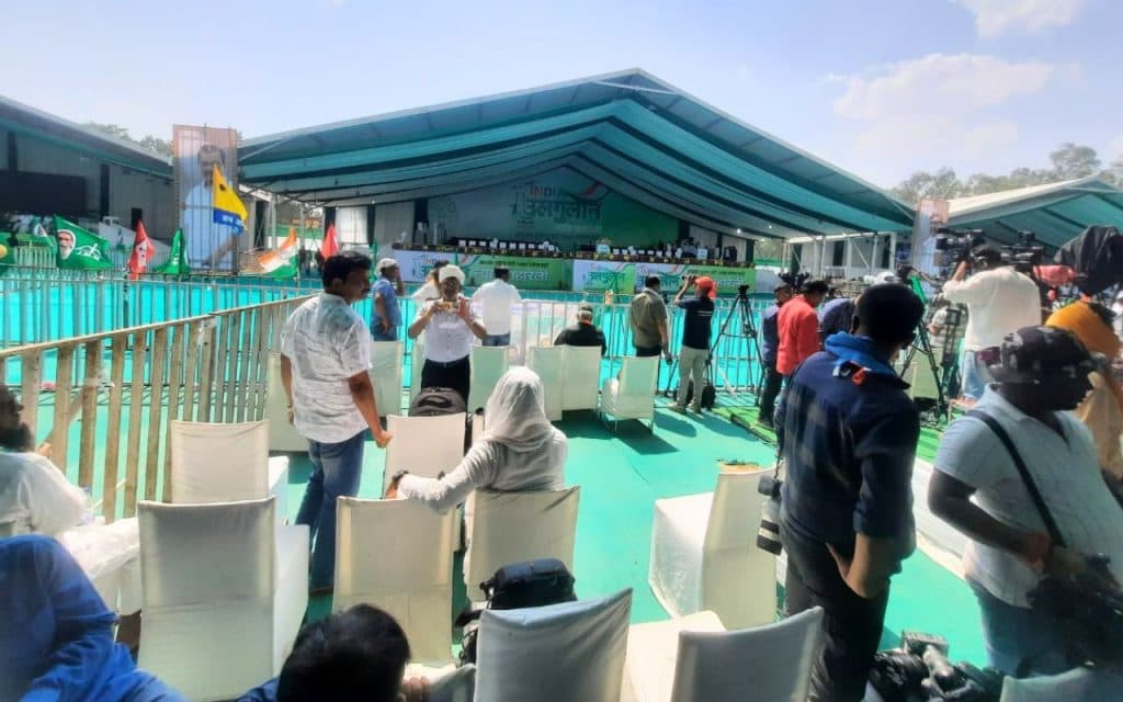 अलग-अलग दलों के समर्थकों की आंखें अपने-अपने नेता को तलाश रही थी. कुछ लोग कुर्सी पर चढ़कर भीड़ का, तो कुछ लोग स्टेज का वीडियो बना रहे थे. दो बजे के पहले ही स्टेड के सामने बने टेंट में रखी कुर्सियां फुल हो गईं थीं.