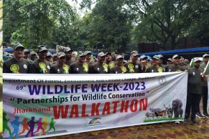 69वें वन्यप्राणी सप्ताह 2023 के उपलक्ष्य में रविवार को सुबह 6 बजे वन्यप्राणी सप्ताह का शुभारंभ वॉकाथन के आयोजन से किया गया. इसका आयोजन स्कूली बच्चों एवं आम लोगों के बीच वन एवं वन्यप्राणियों के संरक्षण के प्रति जागरूकता लाने के उद्देश्य से किया गया. इस कार्यक्रम में रांची के अलग-अलग विद्यालयों से 350 बच्चे,( NCC, Army, NGO, JAP) एवं ऑनलाइन रजिस्ट्रेशन के माध्यम से 400 आम लोग, मुख्य वन संरक्षक एवं अन्य संस्थानों के पदाधिकारी/कर्मचारी सहित 1000 से अधिक लोगों ने भाग लिया.