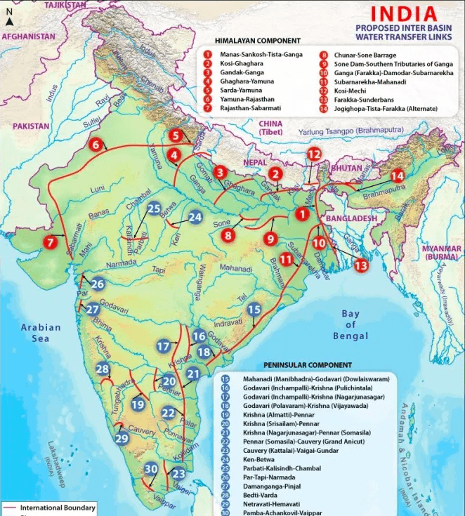 | 2002 | अटल बिहारी वाजपेयी सरकार ने National River Linking Project की घोषणा की. लक्ष्य – 30 लिंक प्रोजेक्ट्स, 14 हिमालयी और 16 प्रायद्वीपीय नदियों को जोड़ना |