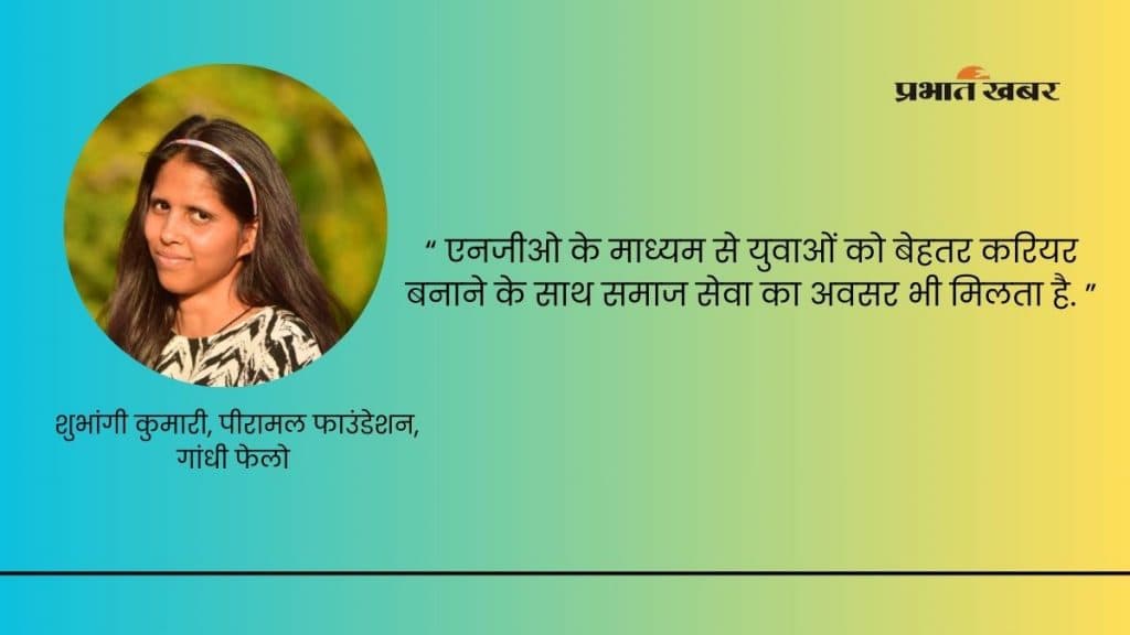 पीरामल फाउंडेशन, गांधी फेलो शुभांगी कुमारी के अनुसार नॉन प्राफिट अर्गेनाइजेशन होने के बावजूद ये रोजगार का साधन इसलिए बन रहा है, क्योंकि यह देश हित में समुदाय के लिए और सरकार को सपोर्ट करने के लिए कार्य कर रहा है. इसमें हम स्वेच्छा से किसी भी कार्य को करने के लिए स्वतंत्र होते हैं, जबकि कॉरपोरेट में आपके ऊपर किसी भी कार्य के लिए दबाव होता है. कॉरपोरेट में अगर मैं जॉब करती तो मुझे सेल्फ डेवलपमेंट करने का मौका नहीं मिलता और मेरी कार्य शैली सीमित हो के रह जाती. इससे जुड़ कर हम देश के विकास में काम कर रहे हैं जैसे कि- कृषि, स्वास्थ्य, शिक्षा. इससे जुड़ कर मुझे समाज के लोगों का मदद करने का मौका मिला साथ ही साथ देशभाव एवं सेवाभाव प्रदान करने का भी अवसर मिला. एनजीओ हमें पार्टिकुलर डोमेन प्रदान करता है. नॉन प्रोफिट ऑर्गेनाइजेशन सामाजिक और आर्थिक योगदान के साथ-साथ रोजगार के अवसर भी प्रदान करते हैं.