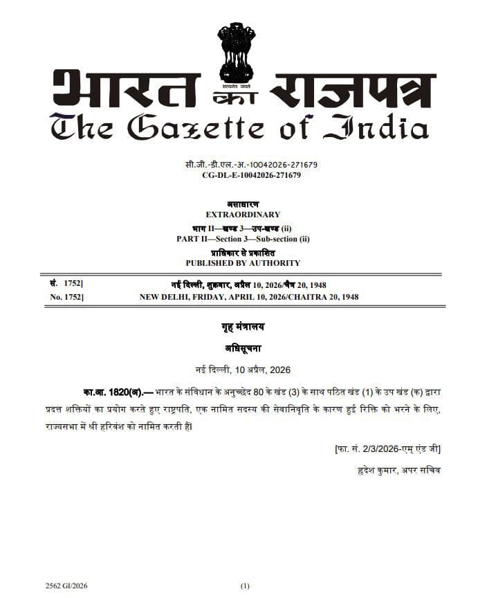 ये भी पढ़ें : हरिवंश फिर बने राज्यसभा के सदस्य, राष्ट्रपति द्रौपदी मुर्मू ने किया मनोनीत